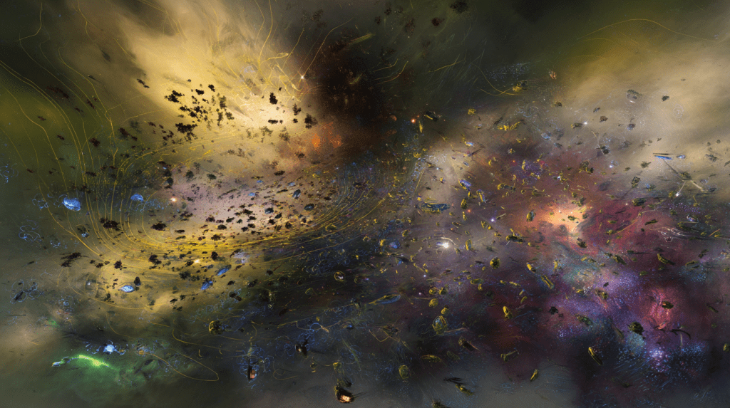 Ihmisen tietoisuus rakentaa tämän kaaoksen päälle erilaisia koordinaatistoja, joiden avulla se yrittää ottaa haltuun alati määrityksiä pakenevaa kaaosta. Tämän takia ihmisen kulttuurissa on monia erilaisia tapoja yrittää selittää maailmaa ja yksikään niistä ei kykene sitä selittämään tyhjentävästi. Keskeisin ihmisen virheistä on luulla tätä mielen luomaa koordinaatistoa kaaoksen ylle todellisuutena. Jotkut koordinaatistoista ovat toimivampia kuin toiset, mutta yksikään niistä ei ole todellinen. Todellisuus on ultimaattinen musteläiskätesti, jossa jokainen näkee omat merkityksensä.